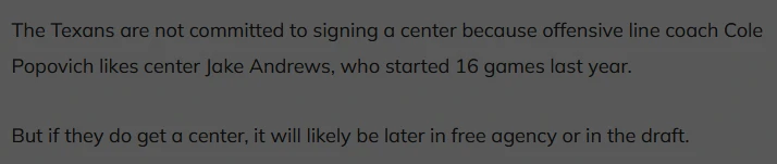 As I wrote about in the immediate aftermath of the New England loss, the offensive line was always going to be an easy target for whatever upgrades the Texans can put together on offense. Once you committed to bringing OC Nick Caley back, the Texans run five-deep at receiver assuming Tank Dell returns and have a rookie contract quarterback who has gone 28-18 in his three years as a starter. (You see me resorting to win-loss record here because I think it would be narratively unfeasible to move on from Stroud, not to defend his playoff performance.) The running game and offensive line were always going to be the main target areas. And the expenses that they took out here haven't kept them from doing anything on defense, where they arguably added a luxury piece in Reed Blankenship as their No. 2 safety.