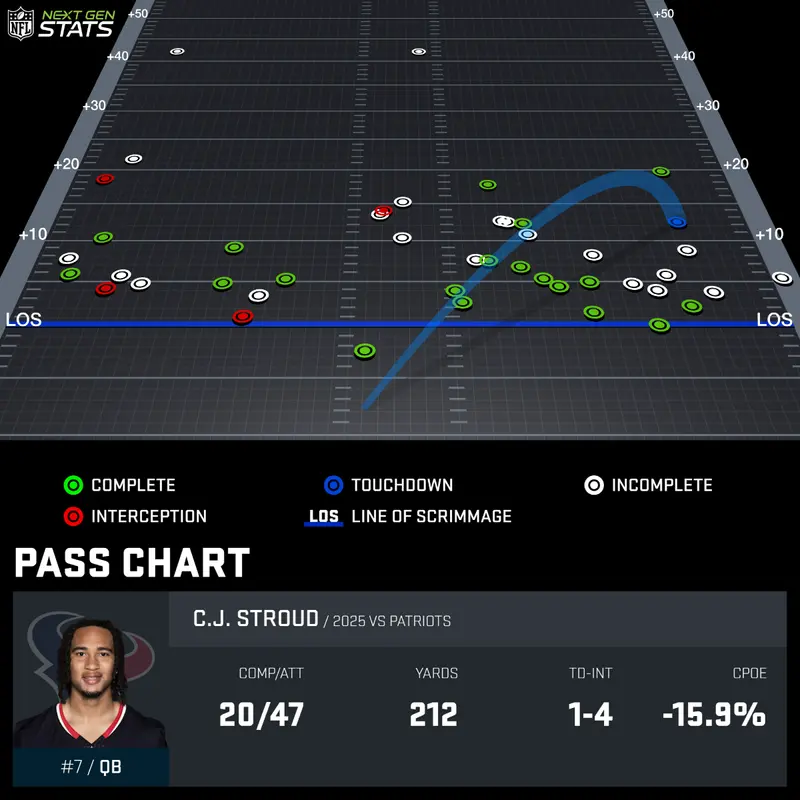 When I started this series about C.J. Stroud, I was really hopeful that he'd deliver the goods in a game like this. Despite the slide in production since 2023, I think he's generally played well. If he made the types of throws he made against the Chiefs in the 2024 Divisional Round against the Patriots, I think the Texans would be a Super Bowl team.