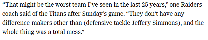 The problem the Titans have isn't that they fired two general managers and two head coaches. The problem is that they never drafted or spent their way into surplus long-term value at any point in the last five years, instead trading away one of the two players they had who retained any. And when you look at this roster today, you feel that. When you see the team desperately praising Peter Skoronski for finally becoming a slightly above-average guard, it's because there's not much else to praise right now.