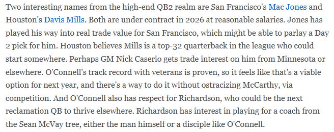 I don’t think Stroud is going to be struggling for money any time soon. But I do think extension talks are not as open-and-shut if he and the Texans instead falter down the stretch with everything on the table for them. If Nick Caserio truly does think Davis Mills is one of the 32 best quarterbacks in the NFL (citation below) and Stroud’s Winning Resume takes on water and invites what I’ll call the eau de Trevor Lawrence into the picture, well… I don’t know that a deal isn’t getting done, but perhaps it is a tougher negotiation than expected.